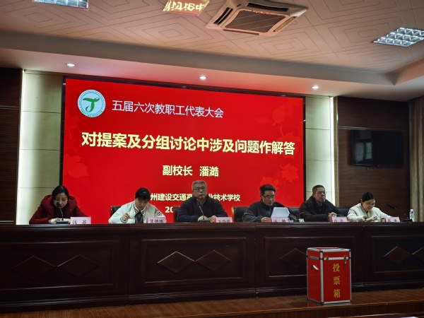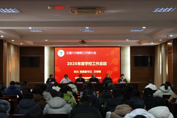 2026年1月23日下午,苏州建设交通高等职业技术学校五届六次会议在国际教育园校区四号楼102会议室隆重召开。大会在庄严的国歌声中拉开帷幕,来自全校各条战线的教职工代表齐聚一堂,共商学校发展大计,共绘学校发展蓝图。